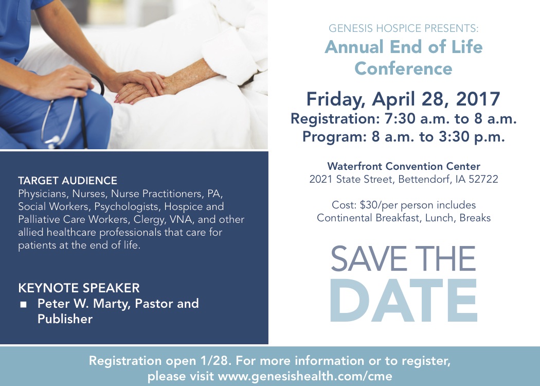 Via The Genesis Hospice End of Life Conference Coordination Team:We are pleased to announce the Save the Date information for